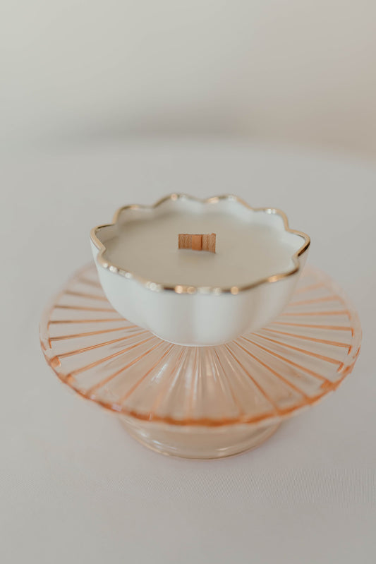 Cream Gold Rimmed Scalloped Ramekin Candle